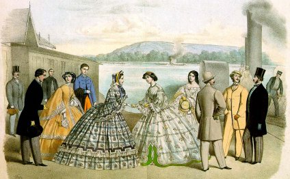 Within the 1850s and 60s, ladies manner saw a rise in the width of women's skirts sustained by crinolines or hoop.