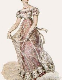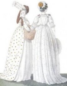 The clothe themselves in this image illustrates inclinations regarding the transition away from the Empire/Regency fashion visual, particularly a far more conical silhouette, and heavy ornamentation around the gown close to the hem. Nonetheless, the waistline remains large.