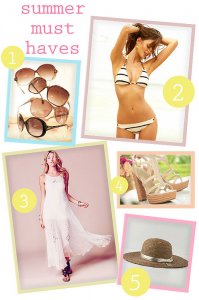 - A killer swimsuit is a major must. We specially love this classic striped bikini by ViX. (Don’t they always have top swimsuits?)