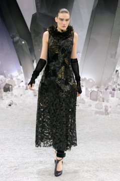 The grandeur for the Baroque age was brought into the contemporary by Lanvin whom revealed dramatic images on a background of candy pinks and brights, combined with oversized amulets round the throat.