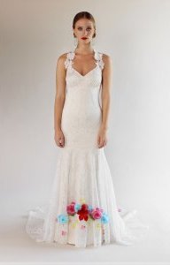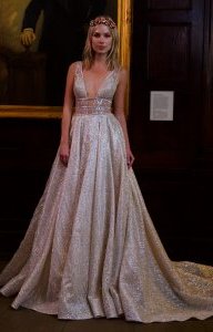 Get ready to bare those shoulders! The off-the-shoulder trend therefore ubiquitously seen regarding the ready-to-wear runways, eventually trickled its way-down into the bridal world. The trend ended up being seen in both minimal and embellished types. J.Mendel kept it sleek in an a-line dress with a subtly shorter front side hemline and bodice cutout, while Sachin & Babi made this trend super romantic by adorning off-the-shoulder cuffs with softly tied up bows. The trend has also been seen in shades of lace at Marchesa, Reem Acra, and Christos.