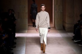 VICTORIA BECKHAM, FEBRUARY 15, 10AM, NY. Victoria Beckham was about neutral shades and artful draping this season. Jewel Samad / AFP image
