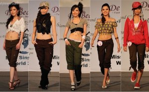 Two form of Japanese street style shot to popularity among Japanese women in the early 1990s and peaked in the early 2000s. Ganguro drops to the larger subculture of fashion. Ganguro typically includes brightly coloured clothes, mini-skirts, and tie-dyed sarongs. The ganguro design is comprised of bleached locks, a-deep tan, fake eyelashes, black-and-white eyeliner, bracelets, earrings, bands, necklaces and platform shoes.Kogal[edit]